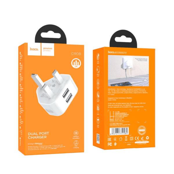 C90B Grandiose, wall charger, dual USB 2.1A output, UK plug.