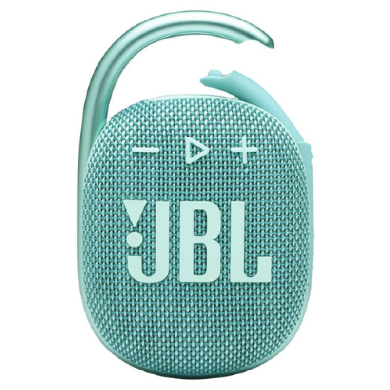 Cool, portable, and waterproof. The vibrant fresh looking JBL Clip 4 (Teal) delivers surprisingly rich JBL Original Pro Sound in a compact package. The unique oval shape fits easy in your hand. Fully wrapped in colorful fabrics with expressive details inspired by current street fashion, it’s easy to match your style. The fully integrated carabiner hooks instantly to bags, belts, or buckles, to bring your favorite tunes anywhere. Waterproof, dustproof, and up to 10 hours of playtime, it’s rugged enough to tag along wherever you explore.