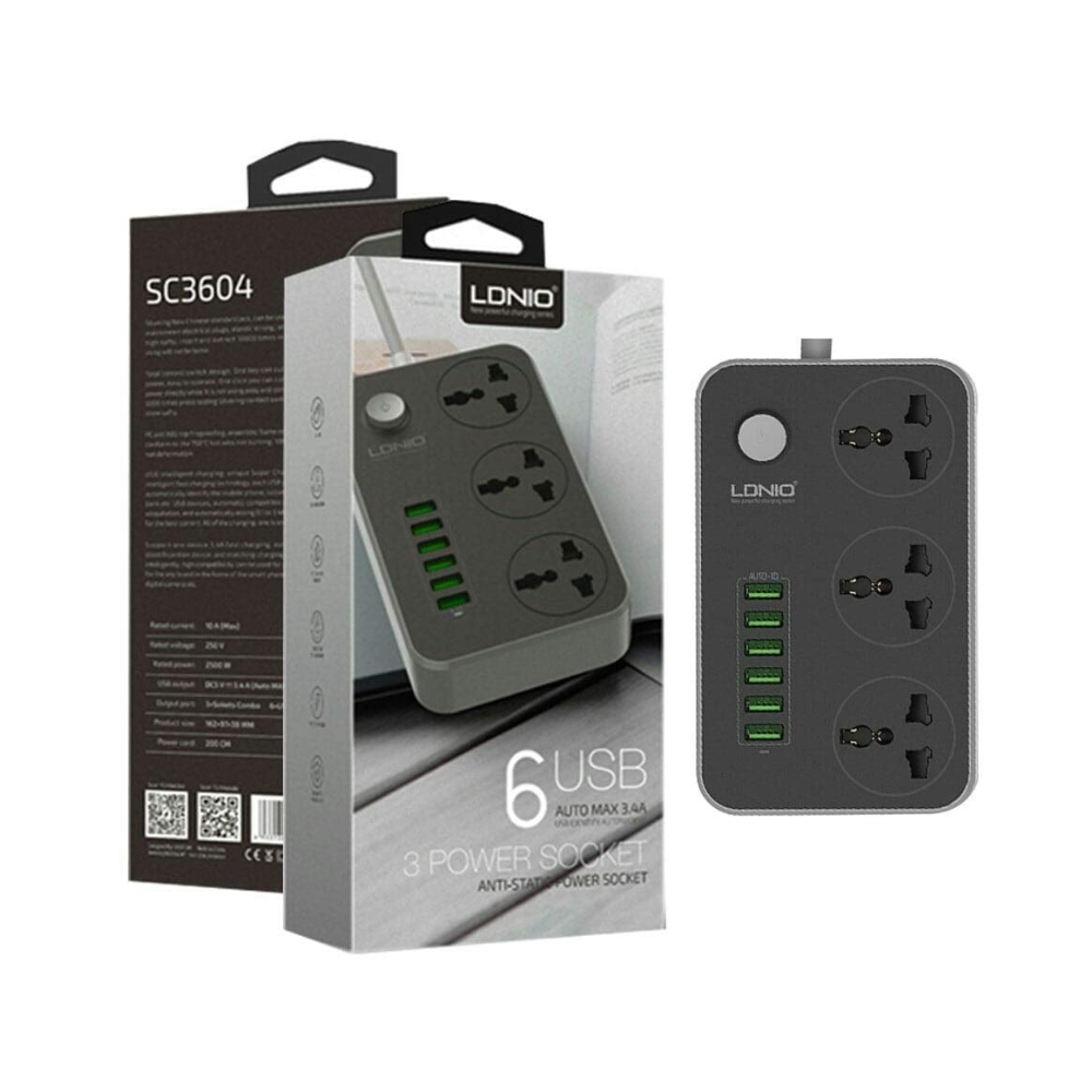 LDNIO SC3604 Power Socket with 3 Outlets Power Strip with 6 USB Ports 17W for Phone to Charge