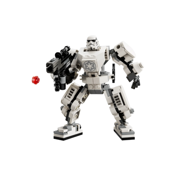 - Posable mech suit – This buildable toy has posable hands, arms, legs and feet, an opening minifigure cockpit, a large stud-shooting blaster and a clip for the Stormtrooper LEGO minifigure’s blaster