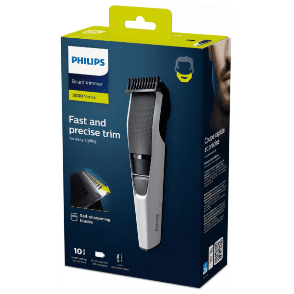 The self-sharpening steel blades on the Philips 3000 beard trimmer stay as sharp and effective as on day 1 to deliver a perfect yet protective trim, time after time.