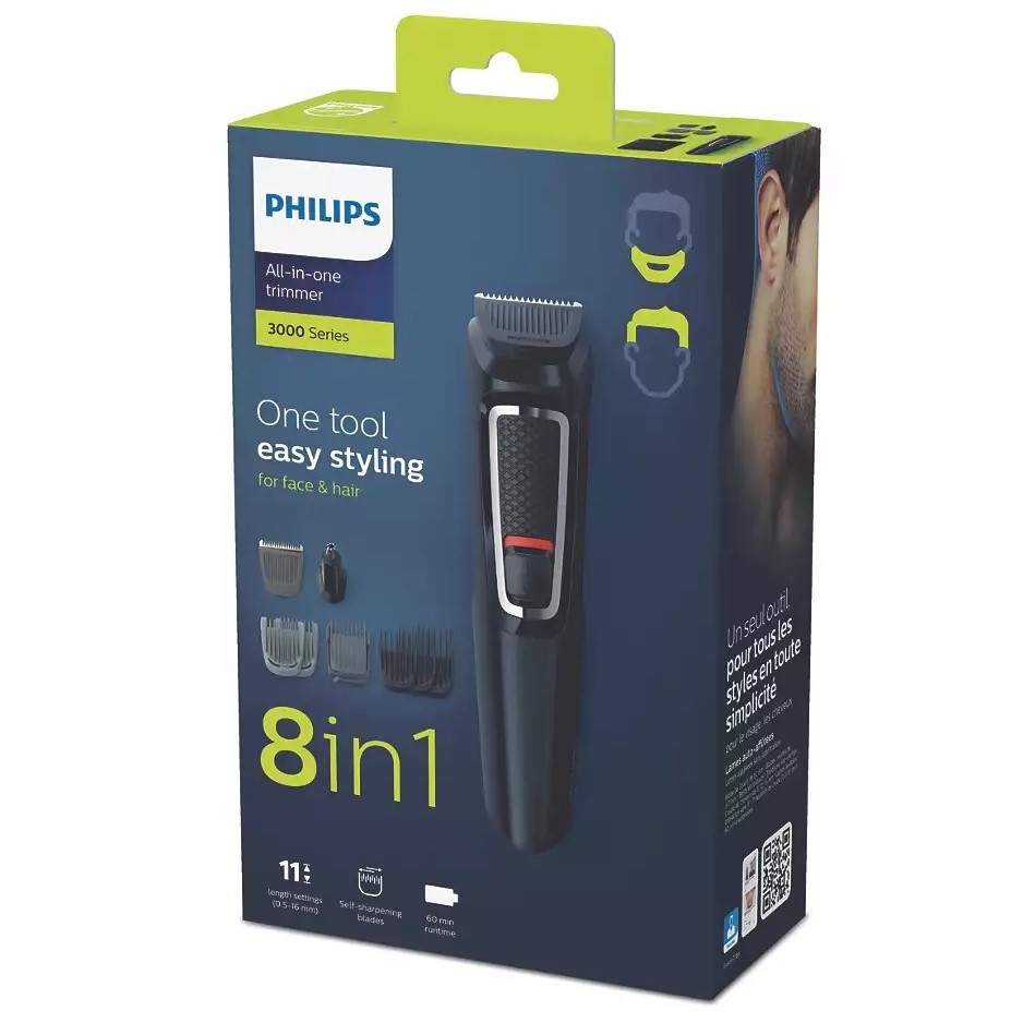 Try out a new look, any day of the week, with this durable Philips Multigroom MG3730 all-in-one trimmer. 8 quality tools allow you to easily create the exact face and hairstyle you want.